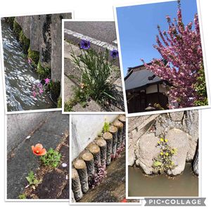 午前中町内巡りして来ました🎶 風強かったけど青空が綺麗だった❣️ 町内に2本の用水路が流れていてド根性花発見しました✌️✌️✌️ 神社⛩の八重桜は満開でした🌸🌸🌸