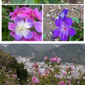 ①② 🏷️今日のお花 ノボタン 下田ロープウェイの 山頂駅を降りたら リトルエンジェルがいっぱい シコンノボタンの種類です つつじまつりみたいに 山中 ピンク色🩷🤍💜 色変するそうです 知らずに行ったので そして今日のお花とは😍 ③ きのうは下田泊 念願の踊り子号にて🚞 旅の目的は ペリー総督と 金目鯛🥰 おじじ様がペルリ好きなので 🏷️朝ドラうけ! 入れます😄 ランチは下田駅近くで 大きな金目鯛のお煮付け 炙り寿司🍣 ホテルの夕食には 金目鯛のロースト 😗左のリソットの上に トレニアが💜 食べましたよ🥰 ④ 昨日は曇り空 ホテルからの朝焼け6:00頃 9:00には快晴 昨日の夜窓から オリオン座確認してると 流れ星🌠一つ みっけ