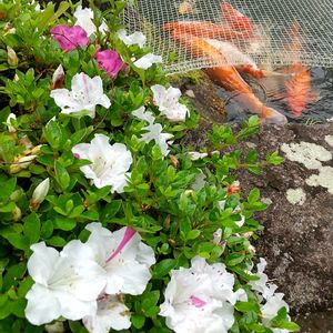 おはようございます😃 サツキがキレイに咲いて‼️と 見ていましたら鯉さん達が寄ってきましたのでパチリ🎵🎶 いい日でありますように💞