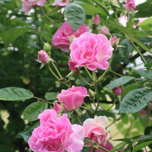 地植えのバラ ピンクサマースノーが咲いています。小花を房状につけ、花色は名前の通りピンクです。