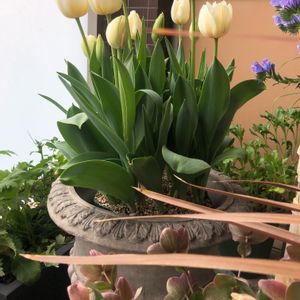 終わりが近いチューリップ🌷 花が終わっしまう前に記念写真📷️ 去年の秋に植えた後に名札をなくしました。 貴方のお名前、何だっけ⁉️