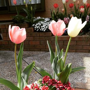 秋に実家の花壇にたくさん植えたチューリップとヒヤシンスがいっぱい咲いて、 母が写真を送ってくれました🌷🌷🌷 実際はもっと可愛いらしい。