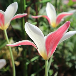 これがやってみたかったぎゅうぎゅうチューリップ ! 純白チューリップが開花し始めました🌷 今日は曇りで気温も下がっているのでパカッと開かずコンディションがいいです