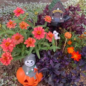 うちのハロウィンパーティー🎃会場 🎃🎃🦇🕸🎃🦇🕸 🇭🇦🇱🇱🎃🇼🇪🇪🇳 ホントは無縁なんですけど〜😆 やってみた! 地植えの寄せ植え...ヽ( ´_つ`)ノ ?