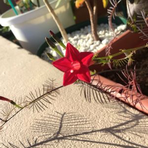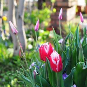 私の庭に、 この春3種類目のチューリップが咲きました🌷 真っ赤な八重の花、 フリンジたっぷり。 背は低めです。 名前は、メイウッド。 秋にパッケージの写真を見て一目惚れして買いました❤️