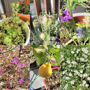 落ちた種から育ったニゲラとかすみ草 小さいまま色付いたデコポン