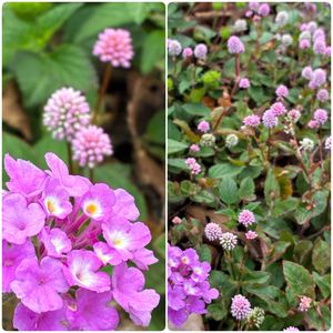 💐今日のお花💐〜ランタナ〜 可愛いポリゴナムと一緒に💕 マイコース🚶♀️🏃♀️の川沿いガードレール下に広がって咲いています💕 通りがかるのが楽しみです♪ 昨日撮影 白と黄色は公園散歩で🤍💛 可愛らしいお花ですネ💐 2025 10月撮影