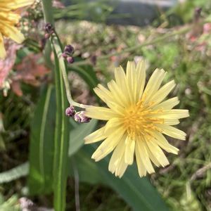 今日のお花 アキノノゲシ ウォーキング中 枯れ草の中咲いてました 綿毛も見られました
