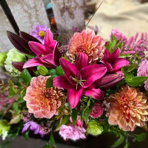 ご注文頂きましたテーブル花です💐 ユリがとっても綺麗です✨✨✨ 制作:aya