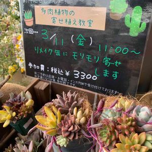 多肉の寄せ植え教室再開します!! 感染対策に努め、少人数での開催となります。。まだ空きがありますのでご予約お待ちしております!!