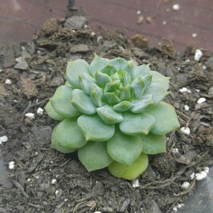 【エケベリア属 オレンジ】 【エケベリア属 ドンド】 Echeveria 'Dondo' 和名 新花乙女 静夜×王妃錦司晃?の交配種 静夜×ルンヨニー?の交配種 ネームタグは【オレンジ】🏷 以前、すずきさんちさんに 【ドンド】・【新花乙女】と 名前を教えていただいたエケ🍊 今年、2番目にジュレました ✂️して、そっと土の上に( ω-、) お腐れ神降臨の季節が、 うかうかしてるとすぐそこに🌧️ 今年こそはなんとしても 脱落者を1桁にくい止めたいです 「作出者不明 淡い緑色の厚い葉の裏に白い微毛がつく 花は鮮やかな橙色 ドンドルビン、デローサ、ヘルフプロードは酷似種 短茎で8cmのロゼットになる」 ☆Source☆ 【羽兼直行】氏の著書より