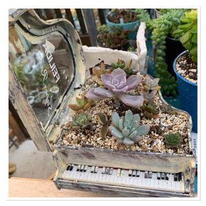 夏前に、グランドピアノのダメージング加工を施し、粗々と苗を植えました。 夏の寄せ植えは難しいのですが、3個位のチビ苗が枯れた位で夏越しが出来たので、ミチミチに加えて行こうかな? 🤔