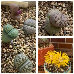 リトープスの脱皮。 ユニークな植物だと思うんですよ。 お花も本体を隠す様な大きさに咲いてびっくり‼️🫢 変化も比較的に分かりやすいです。 単純なホルムだからね。