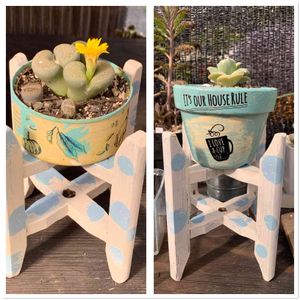 昔の木の糸巻き?を頂き、ペイントしました。 直置きより、花台があった方が良いと言われてるので、リメイクしました。 (*^^*)