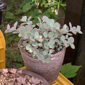 🏷ネックレスの日 ネックレスの中では、1番丈夫で繁殖力も強いと思う、ルビーネックレス。 増やさない努力をしています。( ̄艸 ̄) 左上は、紅葉醒めかけた時。 右上は、今現在。 下は、肥料を少し上げたり、お水を切らさない様にして育成しているので、常緑です。 右側に、セダムが植わっていますが、森村万年草でしょうか?