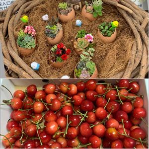 ちまちまとした作業を庭でしていたら、クロネコさんが、GSの花友さんから、こんなサクランボを届けてくれました。 (*^o^*) ありがどうございます❣️ \( ˆoˆ )/😍💕👍 m(_ _)m こちらは、サクランボは作ってないので、可愛らしくて堪らない❗️ 感謝、感激、秀樹、還暦❣️です。