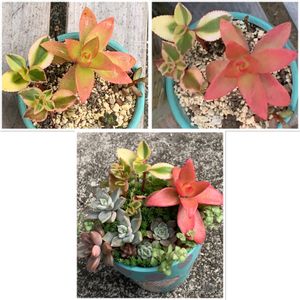 20センチ位の鉢に、昨年の11月に寄せたpicが上段。それが、夏を越したら、左の有り様です。 (>_<) (T_T) 日の当たる所に置きっぱなしでした。 たまに、遮光もしたのですが、遮光外してからの、お水やりが不足していたのかな…(・・?) 今日、あり合わせの苗で寄せてみました。 冬になると、多少は紅葉してくれたら、バランスみて、足りない色を加えたいと思っています。 まだ、どの色になるのか、どれくらいの濃さになるのか全く掴めてないので、体験して身につけて行かないと❣️