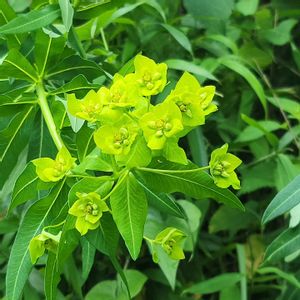 フジタイゲキ🆘 トウダイグサ科 トウダイグサ属 絶滅危惧 Ⅱ類(VU) 自生地では背丈は1.5m位でススキよりちょっと高く顔を出しています。もう少し苞葉が黄色くなります。