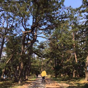 天橋立の松並木 at 京都 地理学の人なら興奮するであろう砂洲の上でございます! 松が高くて綺麗でした。 自転車で渡ってちょうど良いくらいの距離です。 そんな距離、砂がたまるってすごいですよね!
