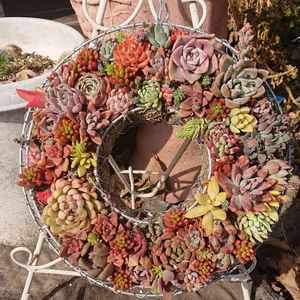 多肉リース 最近暖かいけど、まだ色づいてる🎶 虹の玉だけ伸びてきたΣ(⊙ө⊙*)!!