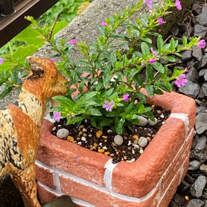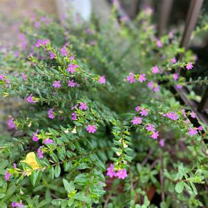 暑くて暑くての日を乗り越えてくれたクフェアパープル🪻 濃い緑でツヤのある葉っぱに くっつくように咲くパープルの小さな花。 生き生きとしています。 真夏に伸び放題のメヒシバをわざと狩らずに残しておき、水分を逃さないようにしました。 どちらも支えながら共存してきた感じ。