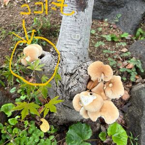 おはようございます╰(*´︶`*)╯♡ 晴れの間に大物お洗濯19度 +。:.゚おぉ(*゚O゚ *)ぉぉ゚.:。+゚ なんだ⁉️ これは🍄🟫キノコ?? サザンカの木を切った根っこに ビッシリと周りに付いてる💦 🧡色が(,,>᎑<,,)カワイイ*•.❥ ヒラヒラスカートみたい✌️ 写真🤳撮ってから、スコップで剥ぎ取りました😅
