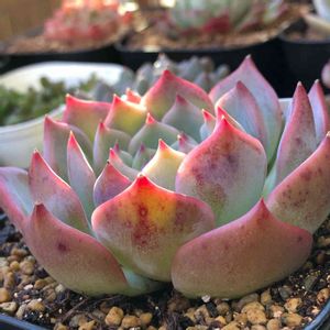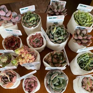 リエール3周年記念セットが届きました。 今回は5個プラス 1個はおまけという内容でした。 おまけは巨大な水蜜桃。これは1500個あると 言ってました(YouTubeで) 手前にあるのがそれです。 これが届いたと言うことはある意味当たりかな〜 ハズレと言うとリエールさんが悲しむけど(^_^;) 他が小さめだから余計に大きさが強調されていますね。せっかく大きいけど葉挿し用に 少し取って植えたいと思います。 この小さめの苗がグン!と大きくなる時 嬉しくなります。 きっと1年後はとても可愛いくなっていると 思います(^_^)