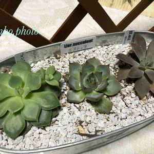 おはようございます☺️🌱 娘の所へ来てから4日目になりました。 え? いつまで居るのかって?笑 はい。7日に帰りますよ🚅 今日の千葉も相変わらず暑いです💧 今日は午後から阿佐ヶ谷に居る長女と遊びます😚 次女は仕事でしたが生〇痛が酷いらしくお休みを貰って自宅で大人しくしてるもようです。 さてさて、私は撮り溜めていた画像をっと。 我が家の数少ないリエール苗さんの中から 小ぶりなエケさん達🌱 エケって、ほんと種類が多過ぎて覚えれません! (覚える気無いですけどね、笑) ハイブリッド種がどんどん出てきて どんどん増えて、もう付いていけましぇん! (ま、付いてくつもり無いですけどね、笑) 暑さでパッカーンしてますけど本来の姿はもっと可愛いはずです。 私の留守中の多肉さん達…。 元気にしてるかしら😂