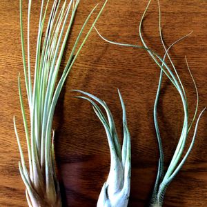 いつもありがとうございます。 今日は エアプランツについて教えてください🙇♂️ ダイソーから エアプランツ3兄弟を連れ帰ったのですが、名前タグがありません。 ネットで調べていたのですが、今一つ自信がないので教えてください。 左→ジュンセア 真ん中→カプトメデューサエ 右→ブッツィー と予想しています。 併せて、育て方の注意点など 教えて頂けると嬉しいです🍀 よろしくお願いします🙇♂️