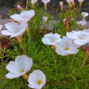 ダ・ル・マ・さ・ん・が… こ・ろ・ん・だ… をして、遊んでいる様な花の向き😳! どうしたんだ!!みんな〰 不思議だ… パンビオは不思議…なぜ花があちこちを向いて咲くのだろう?🤔 このコの陽当りから考えると…皆こっちを向いて咲くはずなのに… 背面は日陰方向… 他の鉢もそうだが…一斉に☀太陽を向いている訳では無さそうだ 種(シュ)の保存に関係があるのだろうか? 例えば自然交配しやすいとか? 今季のパンビオの季節始まりにピンクと淡い紫の二株のシエルブリエをお迎えした… 実は色合いはどちらもあまり気に入ってはいない😑 可愛いすぎるのだ… 去年はいつ行っても、シエルブリエは豊富に有った様に思う、今年は購入する時には、ほぼ残っておらず選べなかったのである… (↑じゃあやめておけって感じだが…手ぶらで帰るのも嫌だった🤣) 今年のコは、彩度も高く姫様の様に本当に可愛らしいのだ…ただ今季の気分から外れている、しっくりこない😓というだけである。 どちらも寄せはシンプルに。 ピンクはシレネユニフローラとハクリュウ🌿 紫は、ハクリュウと紫色アリッサム🌿 並んでフェンスに掛けている。 春には可愛らしく華やかになるだろう… (*˘︶˘*).。*♡