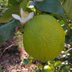 大好きなレモン 無農薬です✨✨⭐ 蕾と花と黄色のレモン 一度に見られて何か嬉しい 小さな幸せ気分です💕🎶