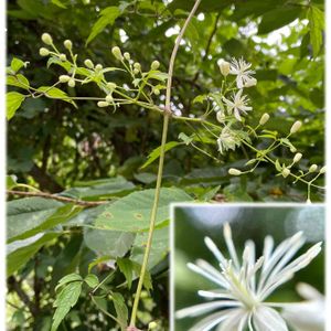 ボタンヅル(キンポウゲ科)神奈川県より 2022.08.06撮影📲在来種 🤍クレマチスの原種🤍 昨日、センニンソウを見たので、やはり一緒の時期に開花していました🤍 センニンソウとの違い ◎雄しべが長い ◎葉っぱがギザギザ、ガサガサ ◎蕾を横から見ると楕円形