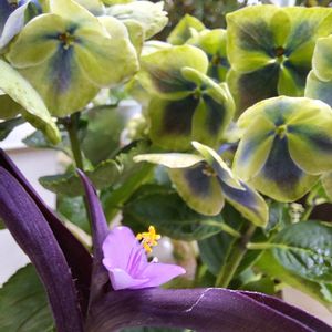 ムラサキゴテン(紫御殿)💕 パープルハート💕 今朝、咲いた一輪の花です。 いつもと違う(^_^;) どこが変か気付きましたか? 葉っぱが全部は写ってないけど、紫とピンクのストライプの すてきな葉っぱ🌱です。