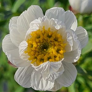 「花かんざし」のあっぷっぷ(ノ)•ω•(ヾ)アップップ 白い花の中に、黄色の花がいくつも咲いています。 アップにすると面白いですね。 白い花びらが、風で揺れてカサカサと音を立てそうですね。