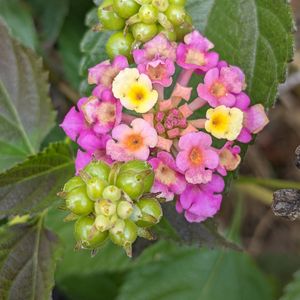 こんばんは~🤓🌃 沢山の実と奇麗な花が一緒に咲く🌸ランタナ🌸 街路樹の下の花壇にて🤗 🏡家の近所の👟ウオーキング🚶の途中🥰 R3年11月16日📸撮影