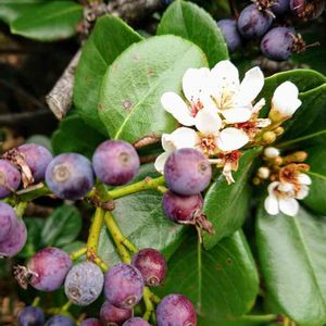 梅のような花 ユズリハのような葉 ブルーベリーのような実