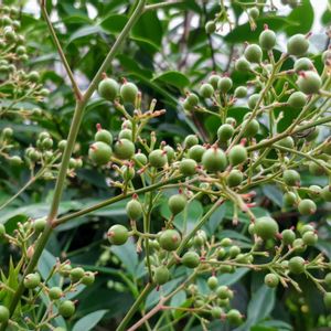 6月に白色の花を咲かせていた南天 もうグリーンの実になっています 冬には赤色の実になるのね!