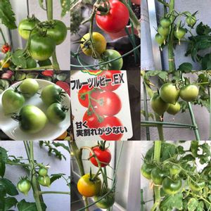 ☔️🌀🌬でよれよれになった🌿 何とか復活しましたヽ(´▽`)/ まだ青いトマトが落果⤵︎😢