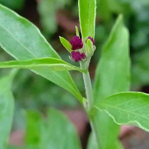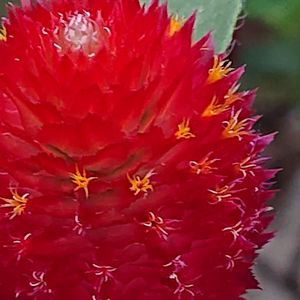 昨年 ヒューケラと一緒に千日紅を植えてた。 小さくて可愛い子が 隣の子に負け、やっと 花芽が色づき顔を見せてくれました。 拡大して撮りました。 花の大きさおよそ 5ミリ 有るか無いか位です。 草丈は 1m 花は 5ミリ程 です。 でも顔を☺️見せてくれて ありがとうです。 濃い赤茶色 ?😅 かな~🎵