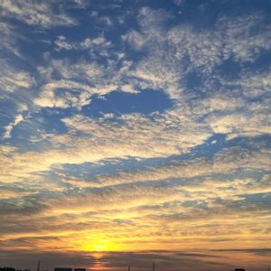 今日の午後ね 不思議な空をみたの。 地平線の真ん中に不思議な色が。 虹が円く🙆なったような? 不思議な素敵な一瞬でした。 、、、ただなぁ写真が粗いのよ。