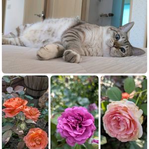 暑いニャー🐱💦 ソラもゴロゴロ 先程の気温情報によると、前橋は36.7度だそうな🥵 薔薇は大体の子は小さな花に虫食い🌹🐛 それでも、暑さに負けずに2番花咲かせている強い子も(o^^o)🌹 🧡レディエマハミルトン 💗プラムパーフェクト 🩷ピエールドゥロンサール他