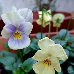 こんにちは〜 今日はいい天気でした(笑) 先週、寄せ植えしたビオラさんたち 今はいろんなビオラがあって 面白いですね〜😊 ラビットビオラやフリルビオラ 色が変わるのもあります(笑) 真ん中の右端のビオラさんは 左が アズールドーン ホワイト→レモン→パープル 右が 天使の誘惑 白→クリーム→青 に変化するそうです😁