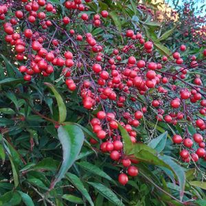 南天🌿 昨日 TVで南天の話題が出ていて、お隣さんにもあったと見に行きました。 もう終わっていたのか、実はかなり少な目。 今年は不作だそう。 こちらは朝日を浴びて気持ち良さそうです☀️❣️