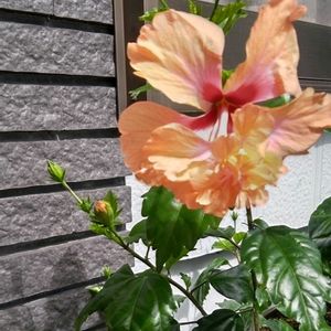今日は「ハイビスカス レモンフラミンゴ」が咲いていました。🥰日の光に輝いていました☺️💖