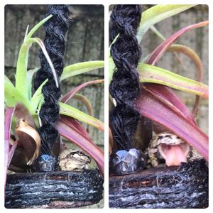 以前ヒロさんから頂いた株もすくすく育ち子株が登場してくれました。 そして根元には🐸さんがおります。