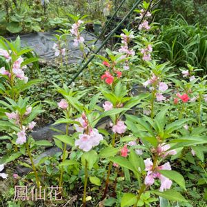 夏の花、鳳仙花も咲いています❣️ 花畑のバラの株の下で、可愛い花が夏の名残のように タネをつけるまで、待ってあげるね‼️