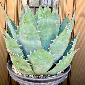 Agave parrasana ' Glove ' 玄関ドア前でパラサナグローブ ✌🏻ᴖ ̫ᴖ✌🏻🎶🎶🎶🎶 usagiさんの8号鉢