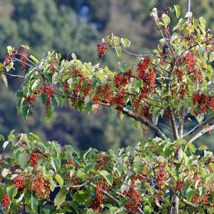 おはようございます ぶどうのように実る赤い実 時間が経つと紫色に ☆。.:*いい日になりますように 🍀☆。.:*