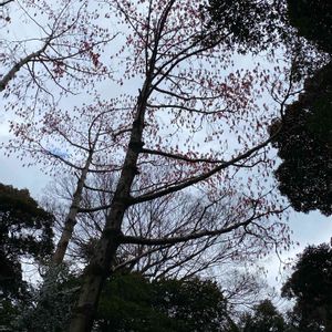 1月10日撮影 附属自然教育園 園内の至る所から赤い実がなっている木が見えます😊 イイギリだと思うのですが、背が高すぎて実が見えません。 近くで見てみたいです🥰 イイギリ(飯桐・椅) ヤナギ科イイギリ属 ・木の姿がキリ科のキリに似ていること、大きな葉が昔、食器代わりに飯(おこわ)を包むのに使われたことから、イイギリと名付けられた。漢字表記は飯桐あるいは椅。飯盛に葉を使った草木としてはホオノキ、アカメガシワ、ハスも知られる。 ・秋(10~11月ころ)になると雌の木にはブドウのような直径1センチほどの赤い実が垂れ下がる。落葉後も長期間、枝に残って人目を惹き、これを狙って小鳥が集まる。この実がナンテンに似ていることから、別名をナンテンギリという。ちなみにナンテンと同様に白い実の品種もある。 (樹木図鑑 植木ペディア より)