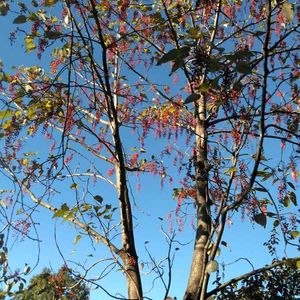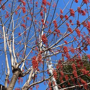 真っ青な冬の空に、10m以上ある高〜いイイギリの木の赤い実が、お花のようにビッシリ実って綺麗です✨✨ 木の姿が桐に、大きな葉でご飯を包んだので飯桐の名前が付きました。 実がナンテンに似ているので、ナンテンギリの別名があります。 葡萄のように房になっていて、ヒヨドリが木の実をよく食べに来ます。 ヤナギ科 もんもんチャンの 🏷青空とコラボシリーズに参加させて頂きます。